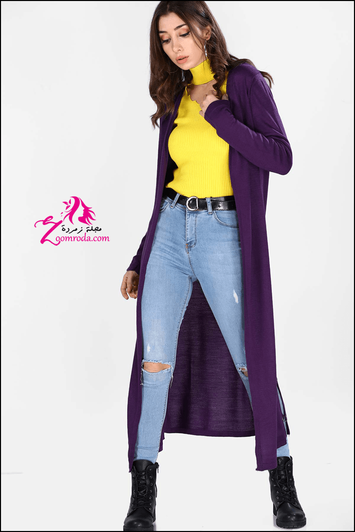 الون الموف الغامق شياكة واناقة للتونكيات مع البدي الاصفر والبلطون الجينز طقم متكامل وشيك ومريح في الخروجات